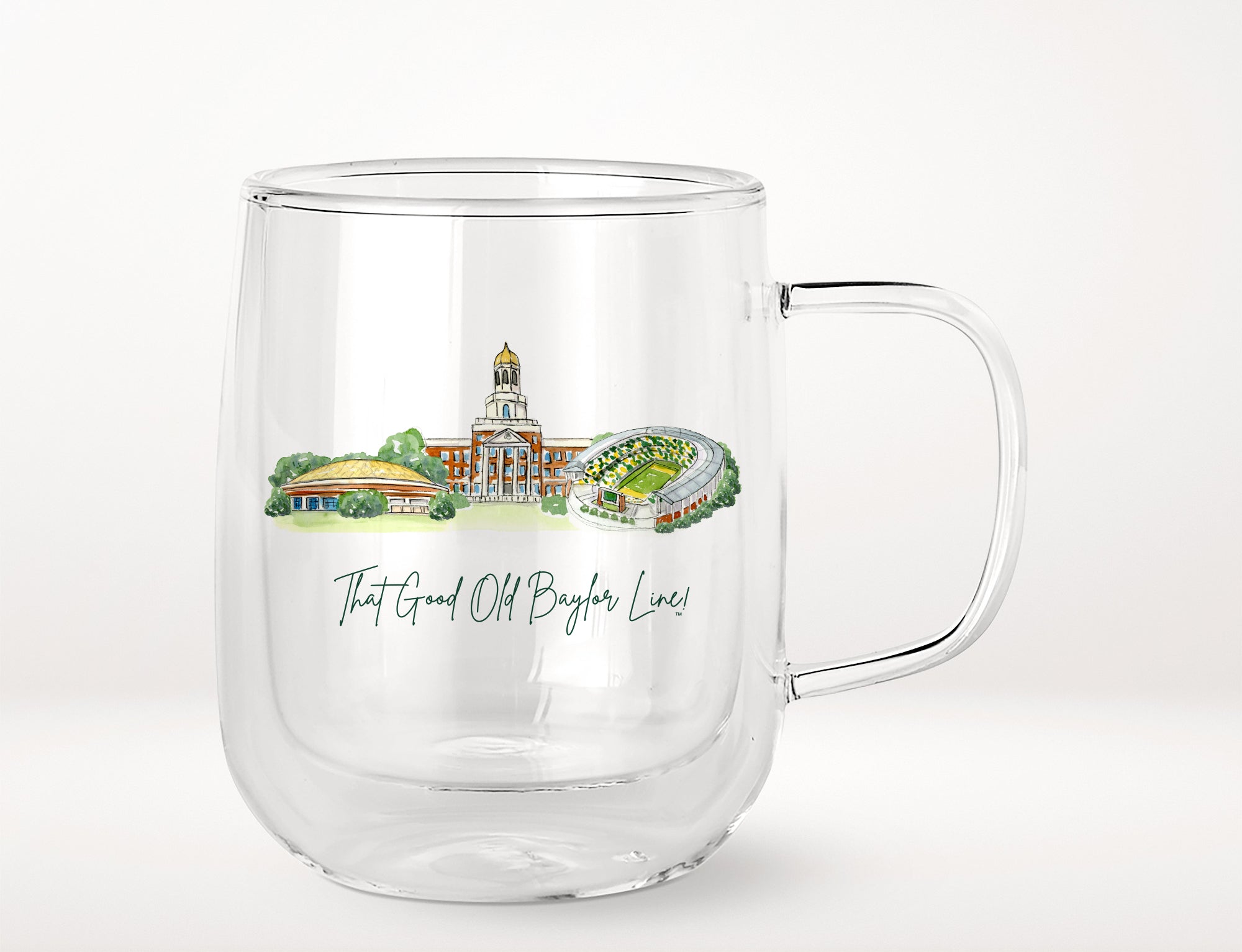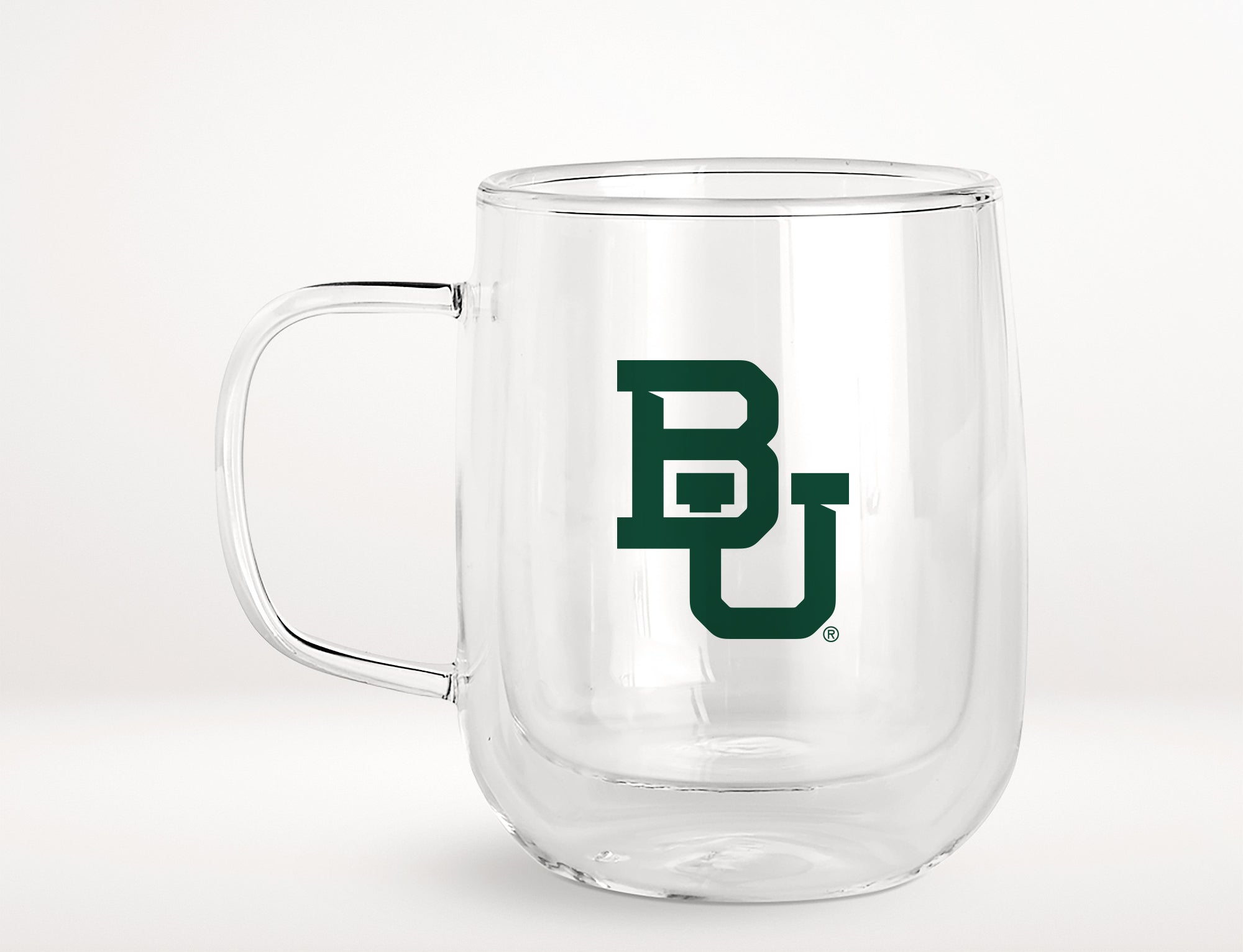 Show your University of Baylor spirit with this officially licensed 16 oz glass mug. Made from durable glass, it features a bold, long-lasting logo. The sturdy handle ensures a comfortable grip, perfect for hot or cold drinks. Ideal for home, office, or game day—sip in style and cheer on your team!