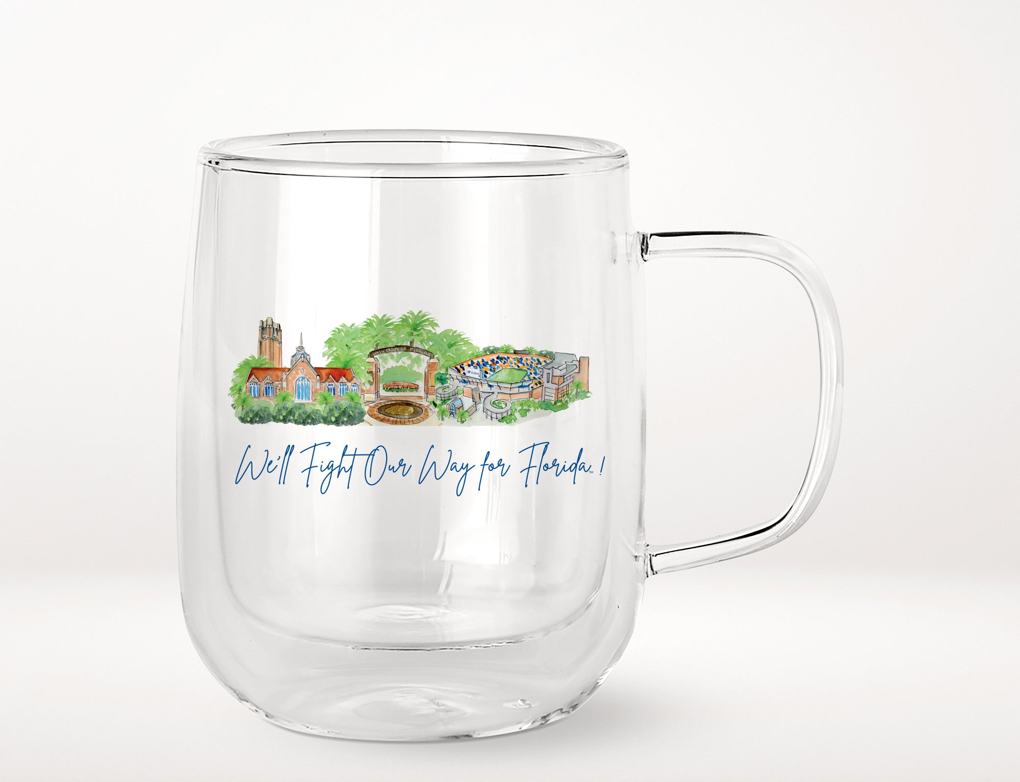 Show your University of Florida spirit with this officially licensed 16 oz glass mug. Made from durable glass, it features a bold, long-lasting logo. The sturdy handle ensures a comfortable grip, perfect for hot or cold drinks. Ideal for home, office, or game day—sip in style and cheer on your team!