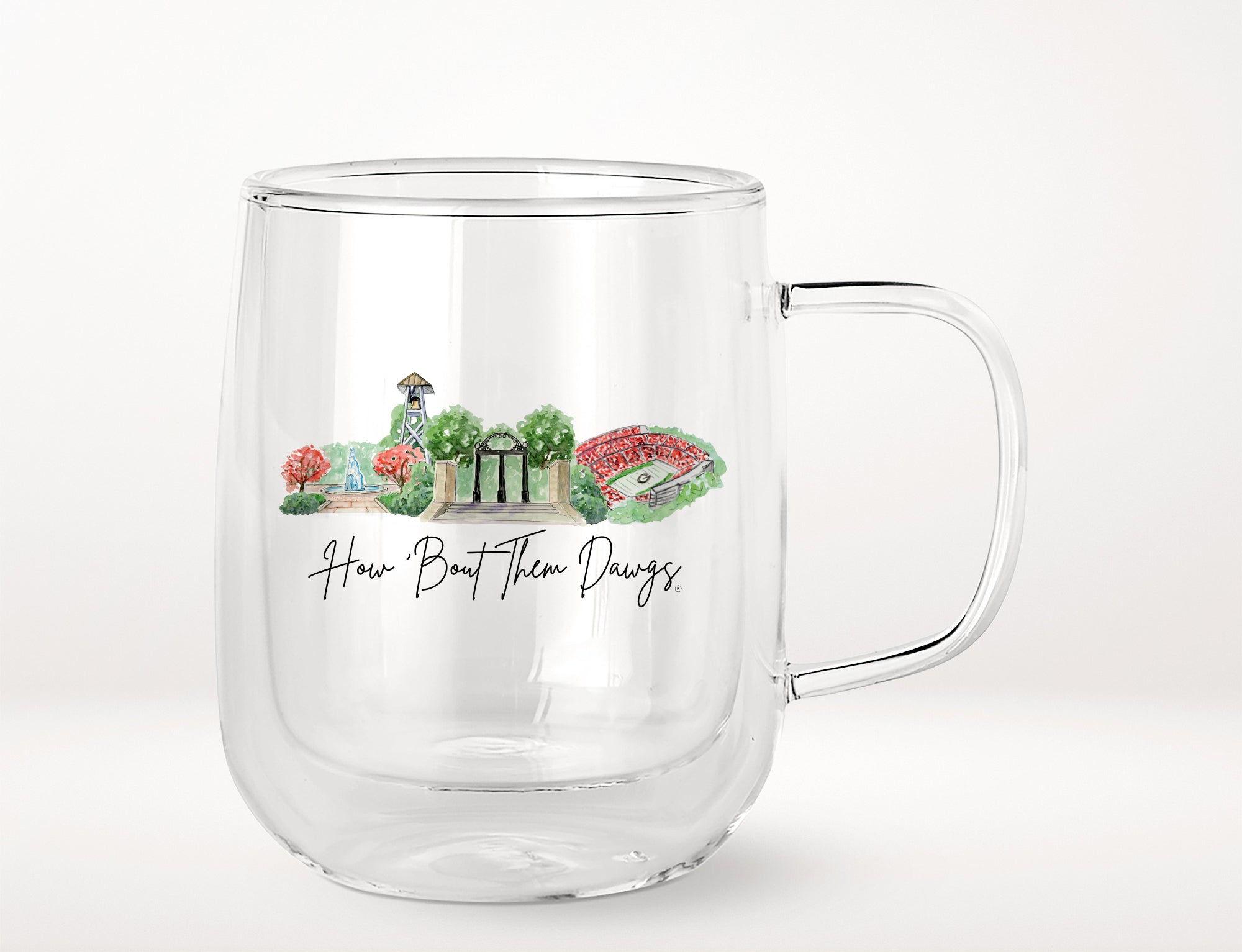 Show your University of Georgia spirit with this officially licensed 16 oz glass mug. Made from durable glass, it features a bold, long-lasting logo. The sturdy handle ensures a comfortable grip, perfect for hot or cold drinks. Ideal for home, office, or game day—sip in style and cheer on your team!