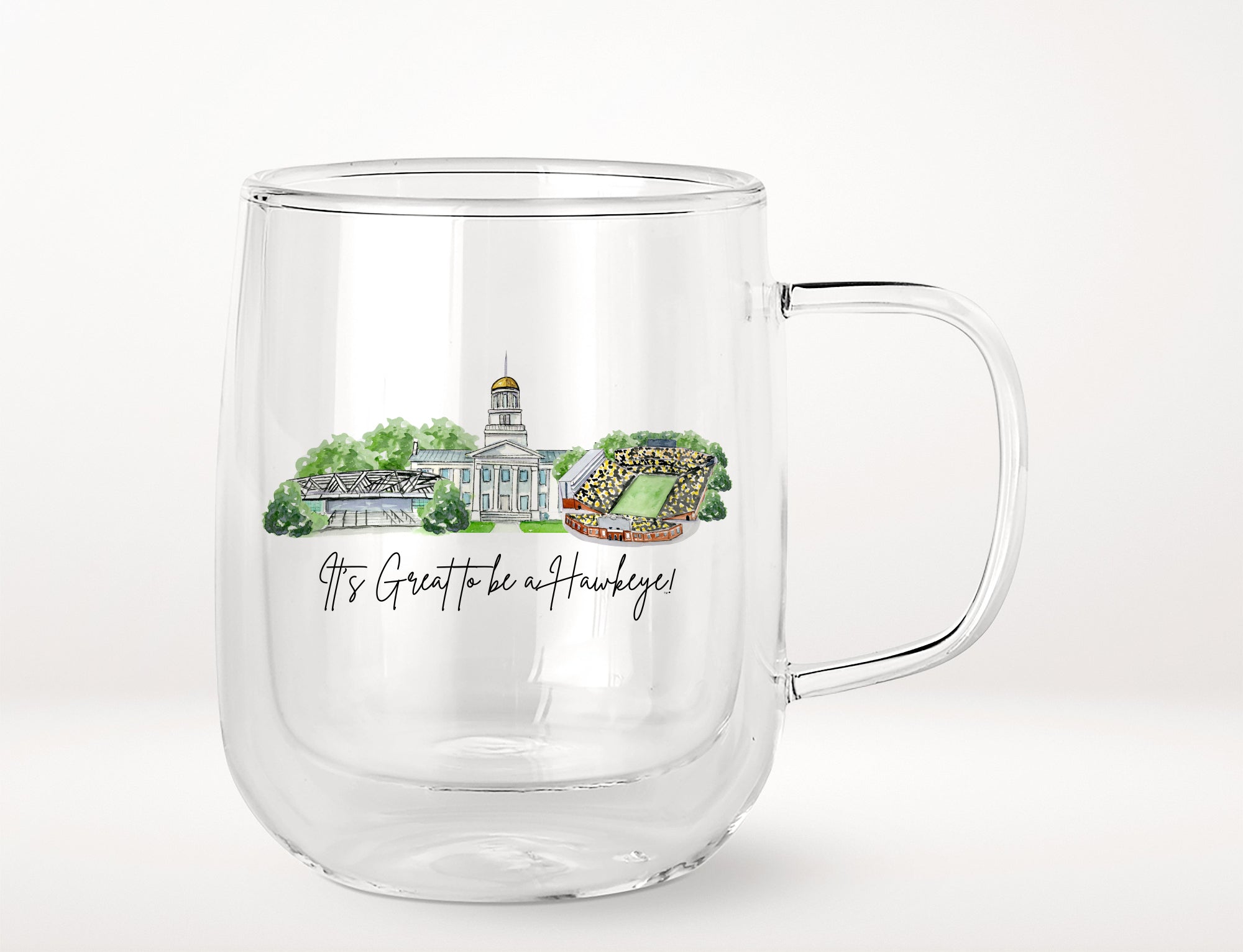 Show your University of Iowa spirit with this officially licensed 16 oz glass mug. Made from durable glass, it features a bold, long-lasting logo. The sturdy handle ensures a comfortable grip, perfect for hot or cold drinks. Ideal for home, office, or game day—sip in style and cheer on your team!