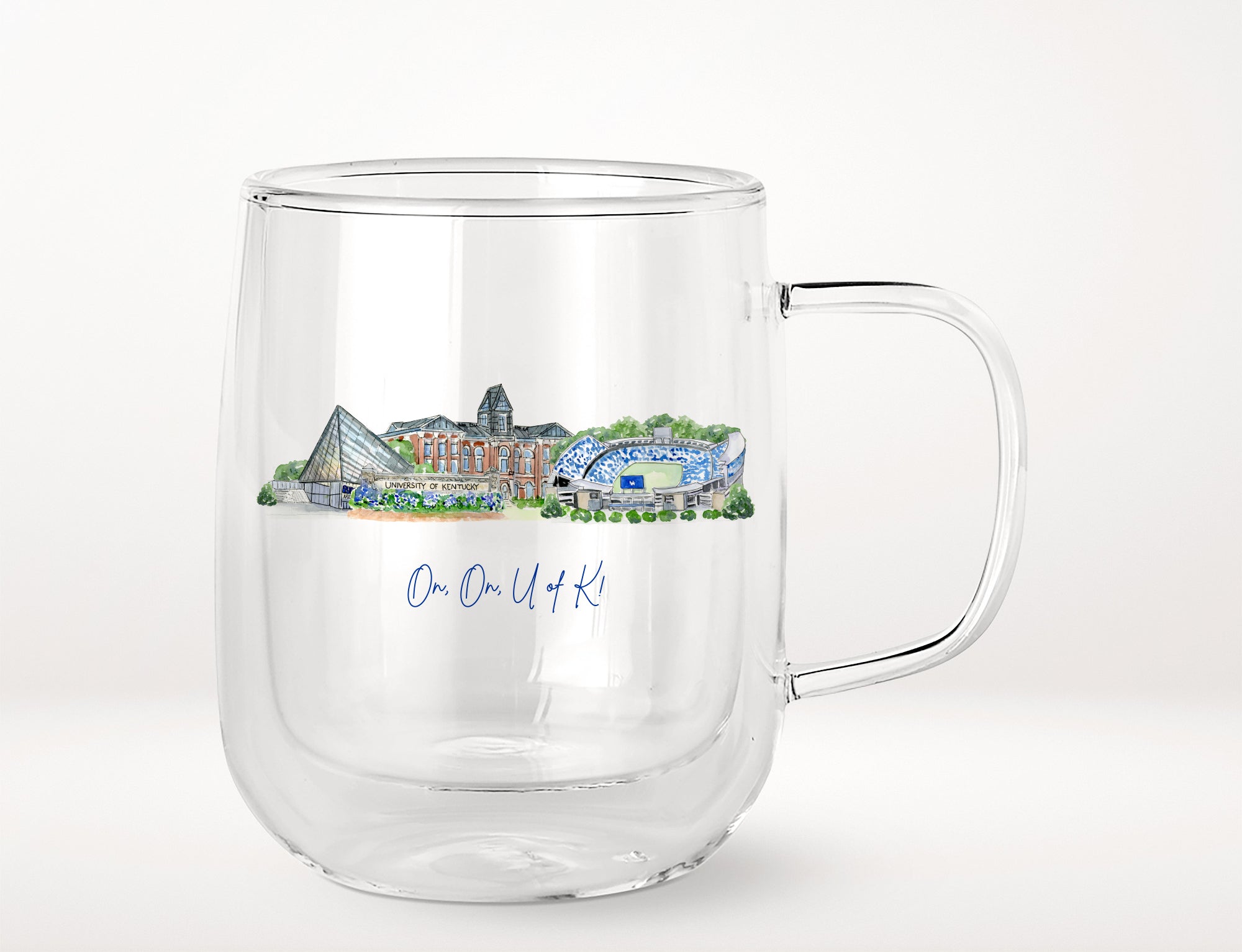 Show your University of Kentucky spirit with this officially licensed 16 oz glass mug. Made from durable glass, it features a bold, long-lasting logo. The sturdy handle ensures a comfortable grip, perfect for hot or cold drinks. Ideal for home, office, or game day—sip in style and cheer on your team!