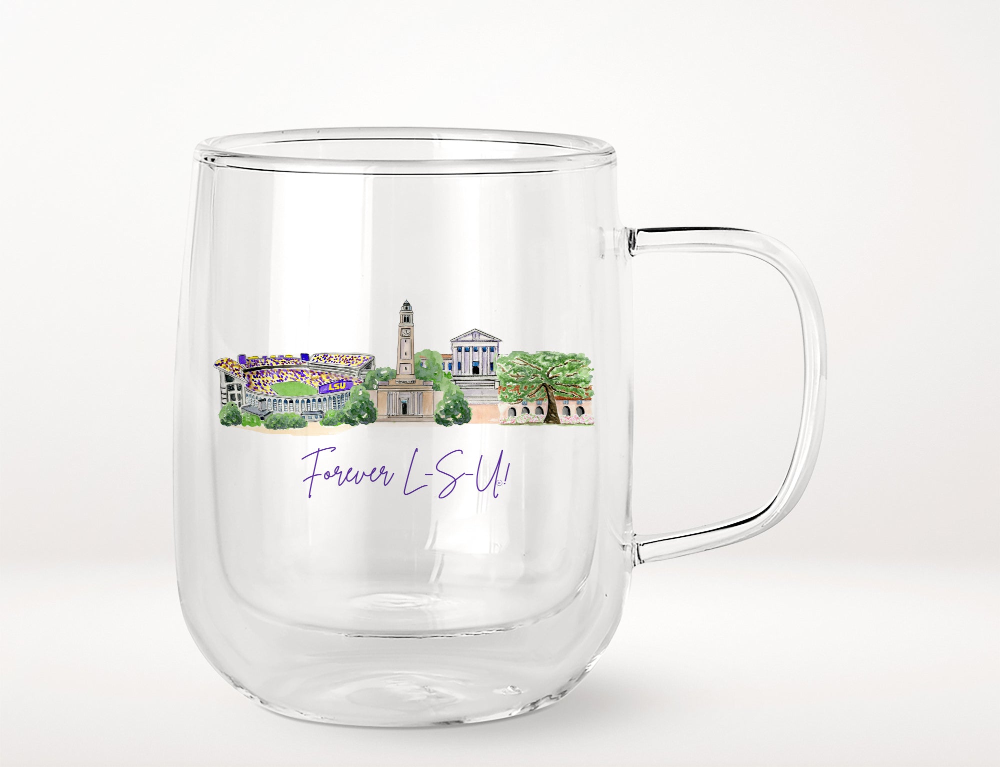 Show your LSU spirit with this officially licensed 16 oz glass mug. Made from durable glass, it features a bold, long-lasting logo. The sturdy handle ensures a comfortable grip, perfect for hot or cold drinks. Ideal for home, office, or game day—sip in style and cheer on your team!