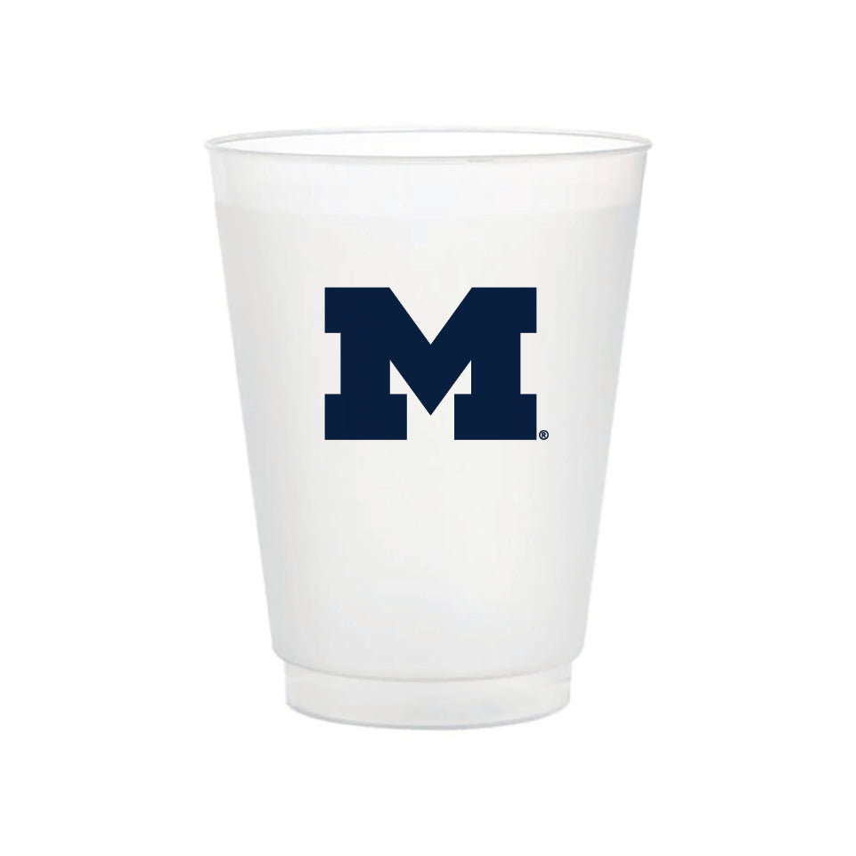 This pack of eight, 16oz frosted plastic cups is the perfect addition to any Michigan celebration or tailgate. These reusable cups feature a double-sided design, and their translucent, textured finish provides an elegant look while remaining durable enough for game day festivities, graduation parties, or everyday use for any student, fan, or alum!