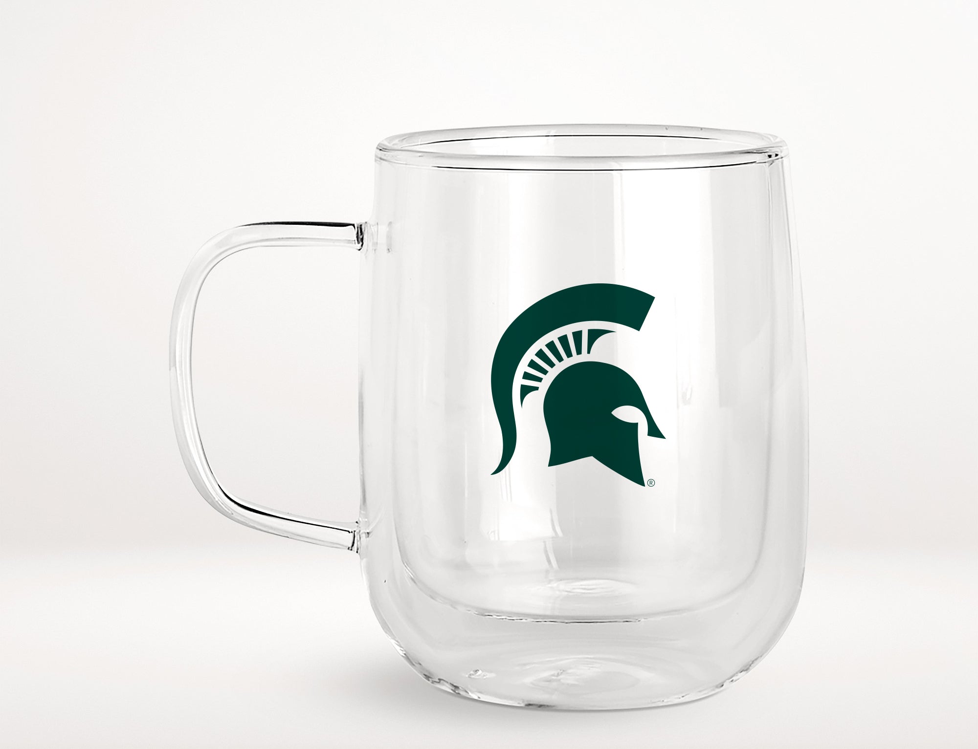 Show your Michigan State spirit with this officially licensed 16 oz glass mug. Made from durable glass, it features a bold, long-lasting logo. The sturdy handle ensures a comfortable grip, perfect for hot or cold drinks. Ideal for home, office, or game day—sip in style and cheer on your team!