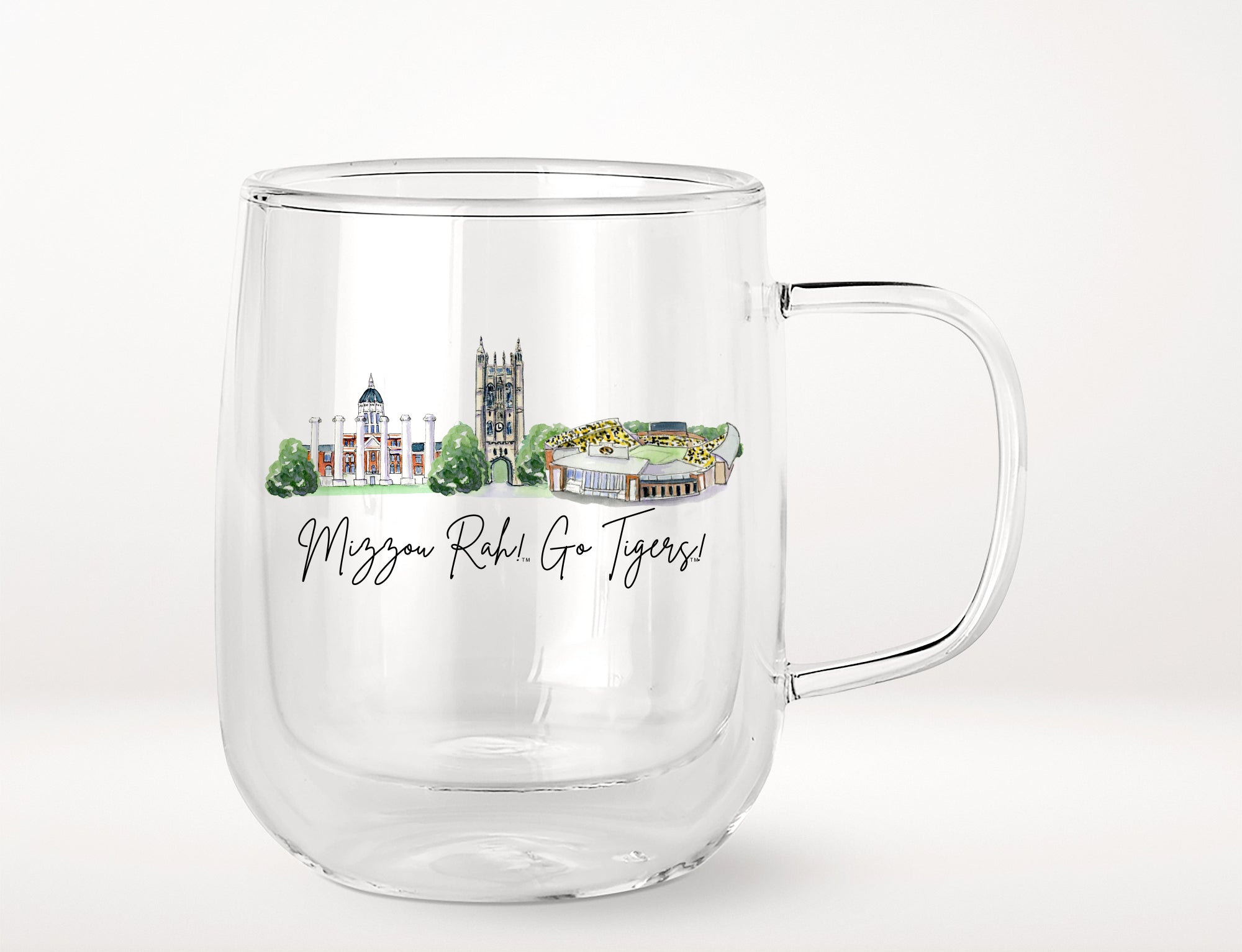 Show your University of Missouri spirit with this officially licensed 16 oz glass mug. Made from durable glass, it features a bold, long-lasting logo. The sturdy handle ensures a comfortable grip, perfect for hot or cold drinks. Ideal for home, office, or game day—sip in style and cheer on your team!