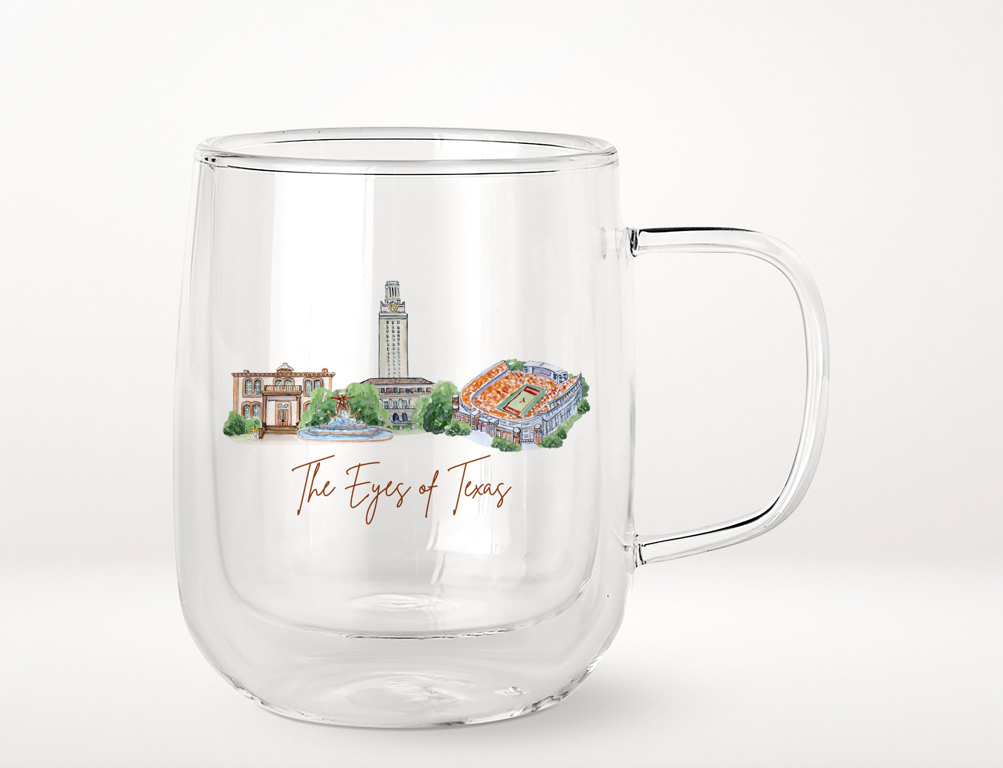 Show your University of Texas spirit with this officially licensed 16 oz glass mug. Made from durable glass, it features a bold, long-lasting logo. The sturdy handle ensures a comfortable grip, perfect for hot or cold drinks. Ideal for home, office, or game day—sip in style and cheer on your team!